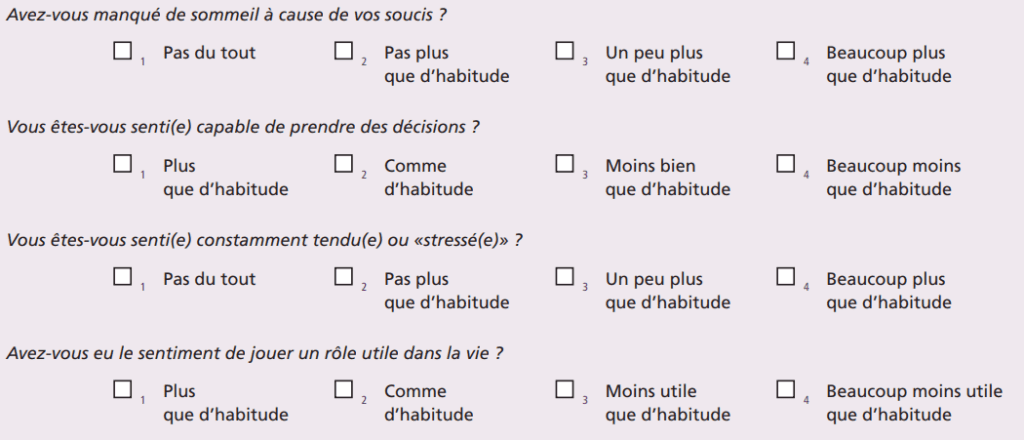 Plus précisément, les chercheurs ont analysé les réponses des volontaires de Constances aux 12 questions de la version française d’un auto-questionnaire international appelé GHQ-12 (avec GHQ pour General Health Questionary) présent dans le questionnaire de suivi annuel 2019. Ces 12 questions portaient sur la présence de stress, de fatigue mentale, d’anxiété, de baisse de moral ou de perte d’intérêt.